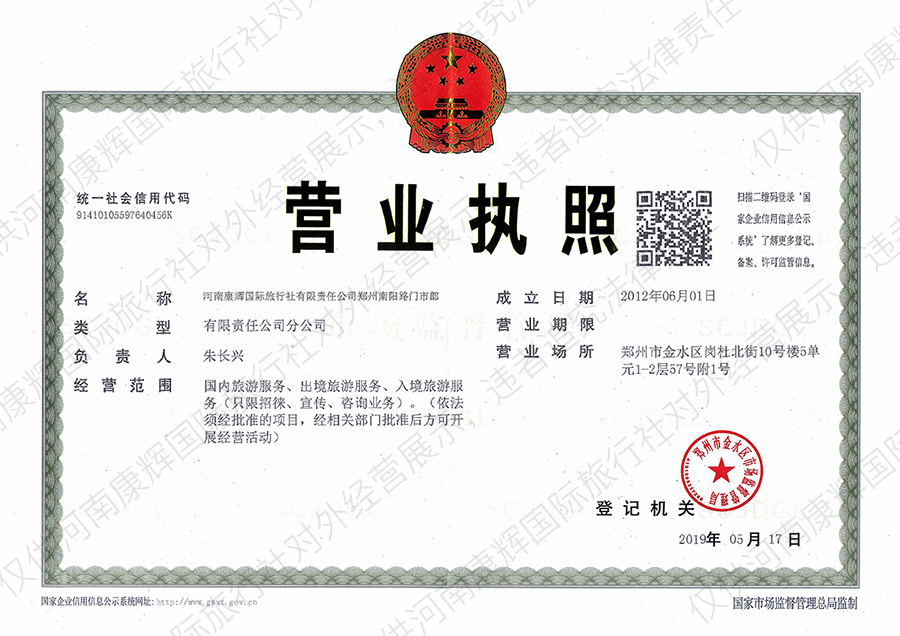 2013 河南康輝國際旅行社有限責(zé)任公司鄭州南陽路門市部